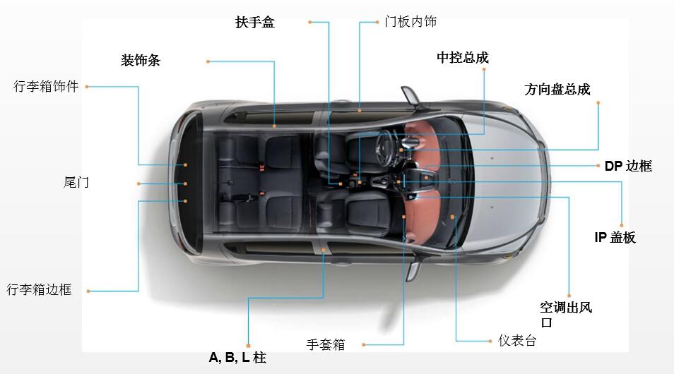臻博機(jī)械的設(shè)備大都用于汽車內(nèi)外飾件的組裝生產(chǎn),圖中控,儀表臺(tái),頂棚,門板,汽車燈具,發(fā)動(dòng)機(jī)艙零件,進(jìn)氣系統(tǒng),排期系統(tǒng),油箱油路系統(tǒng)等。